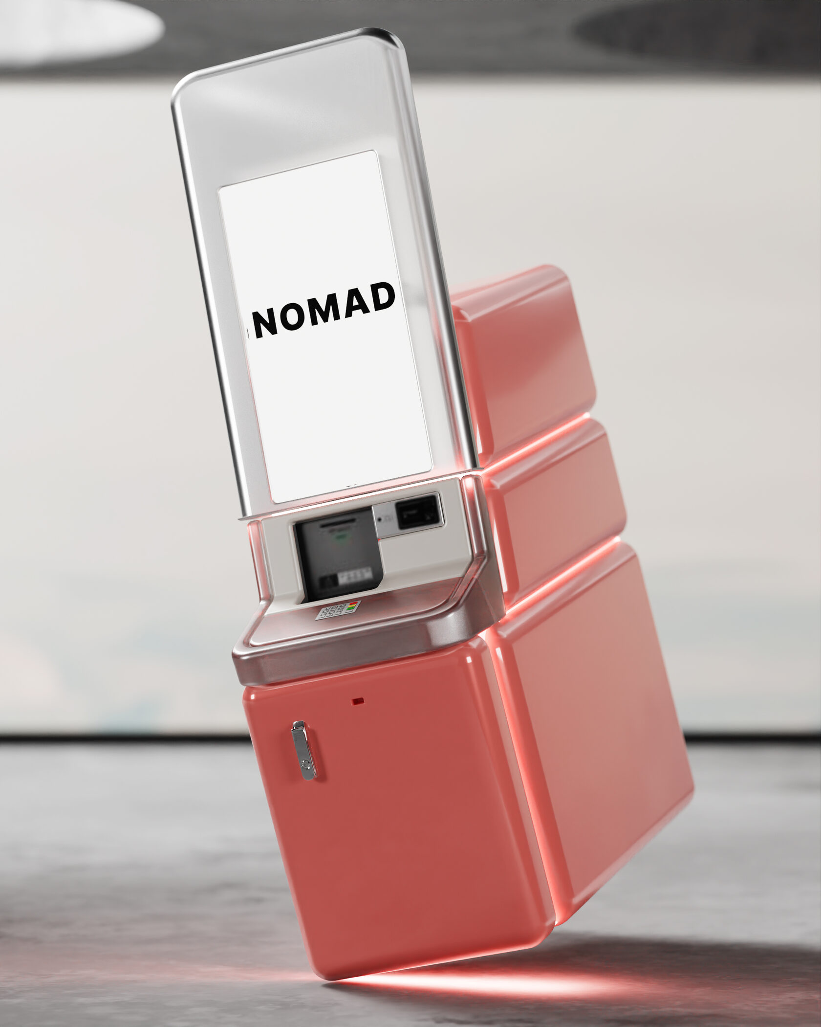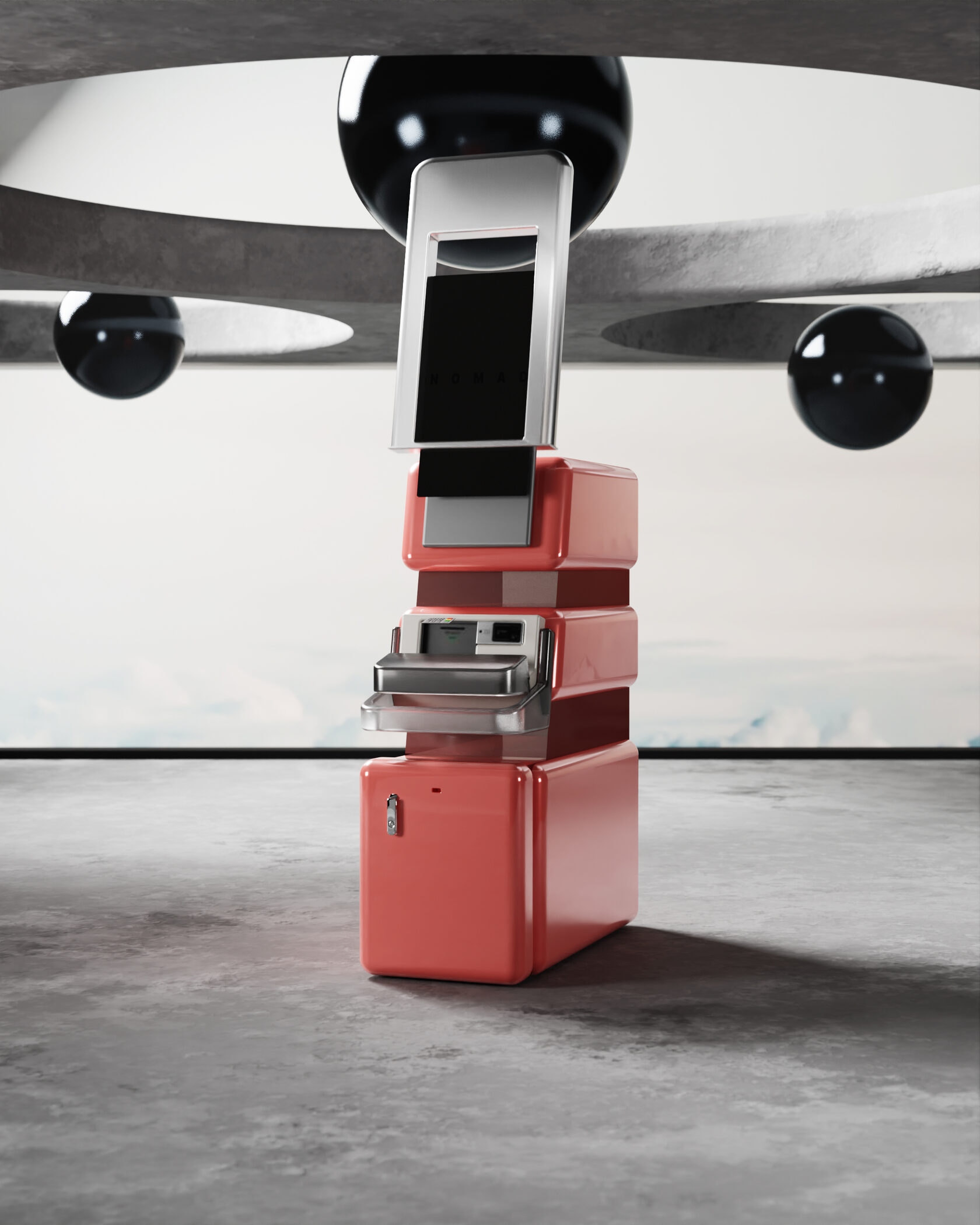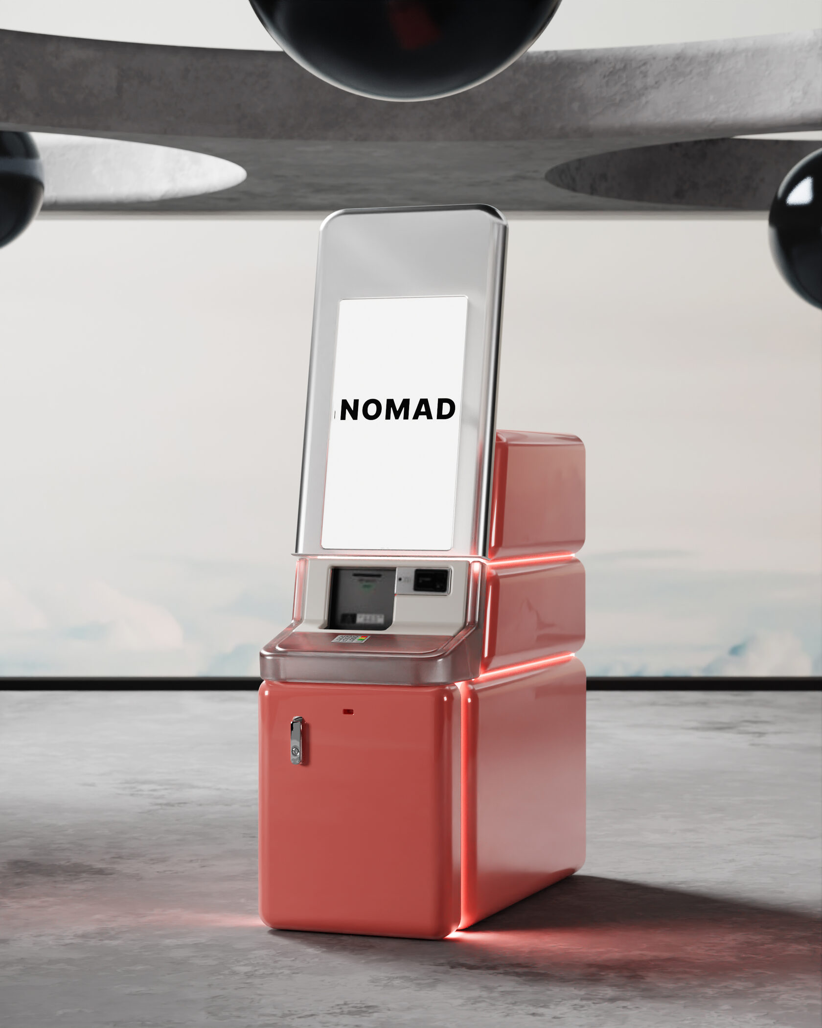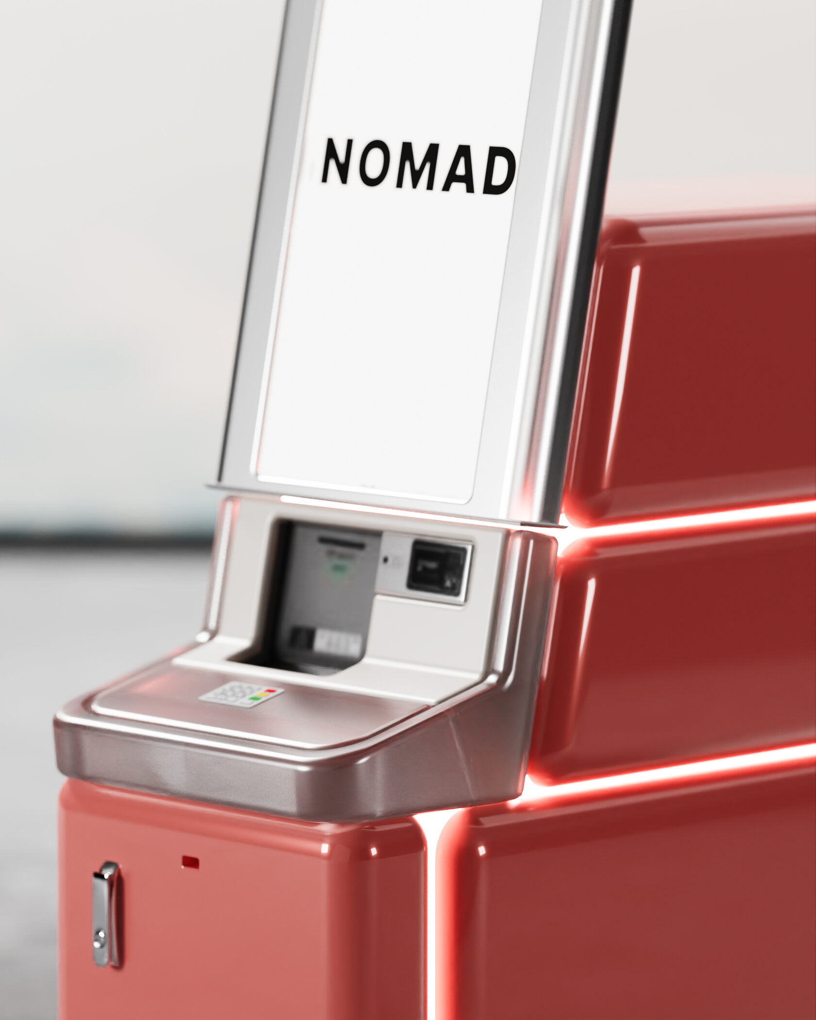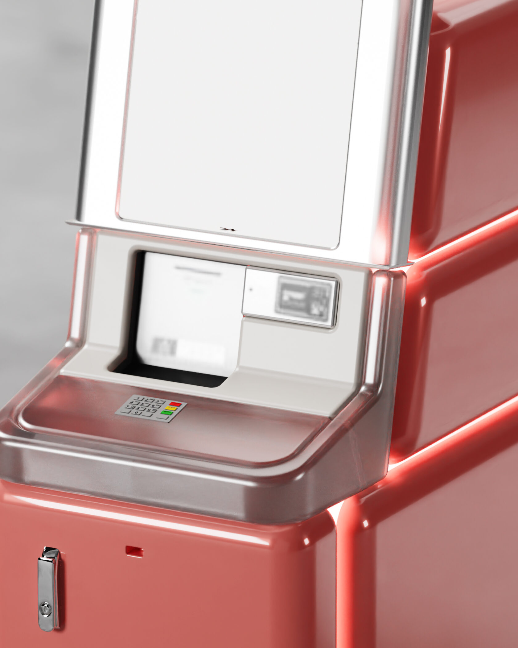 В концепте банкомата задачи брендинга и рекламы решены путем нестандартной обшивки, которая заменяет оклейку и подсветки. Простые формы и нарочитое отсутствие кричащих брендированных панелей формируют альтернативное представление стандартного устройства. Скругленные формы и щелевая подсветка отсылают к промышленному дизайну нулевых и переосмысляют эстетику той эпохи.